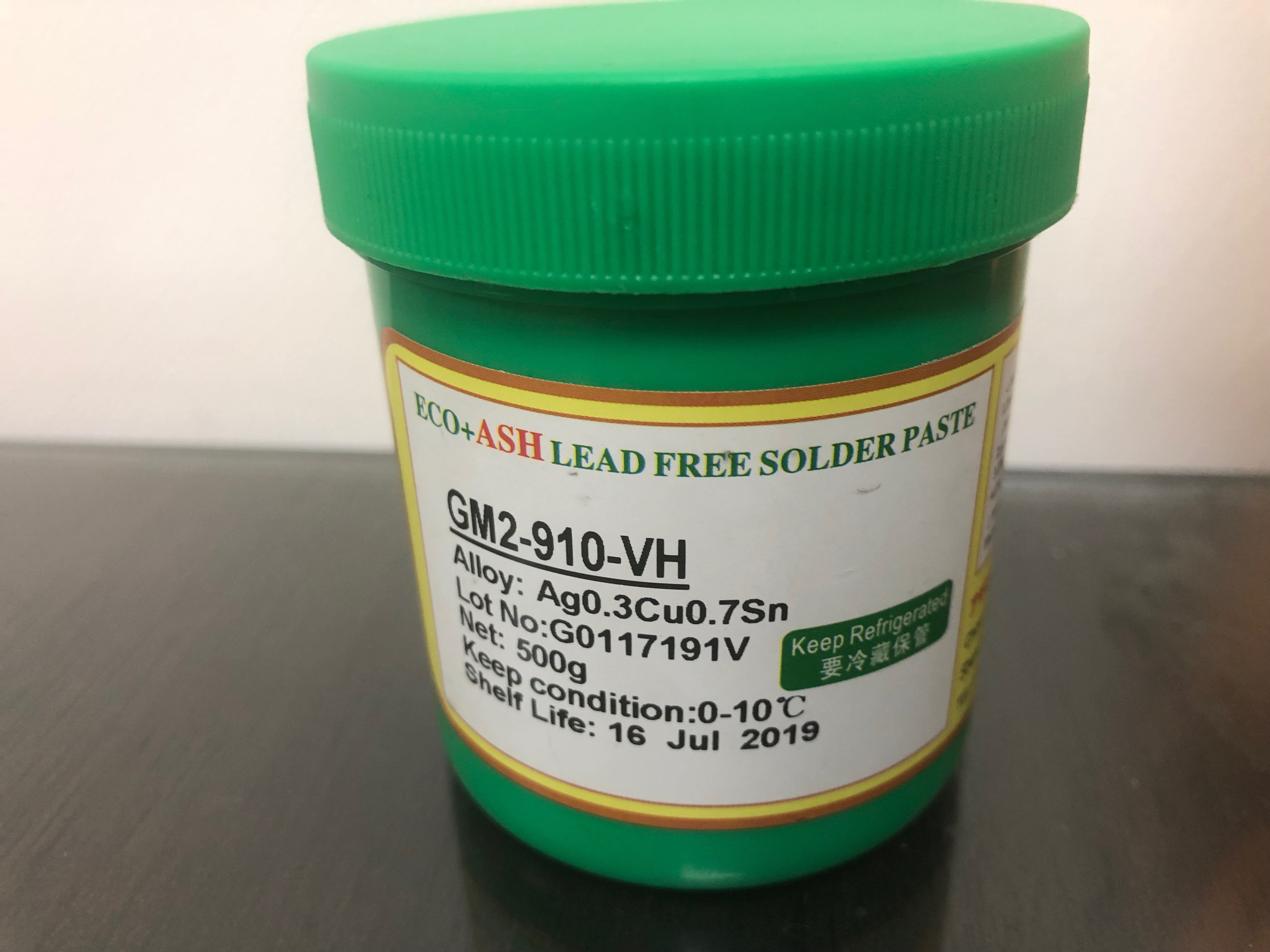 Lead Free Solder Paste Unit of Per Kg. Physical condition Uniform paste Color : Gray Smell : Mild flavors Melting point(alloy metal) : 217°C-219°C Viscosity:200±30 Pa.s (Malcom PCU-205:10rpm, 25°C) Specific gravity:4.1~4.3g /cm3 Explosive limits :No explosion hazard Solubility: Unable or difficult to be united with water Flash point : No applicable Self-ignition temp.